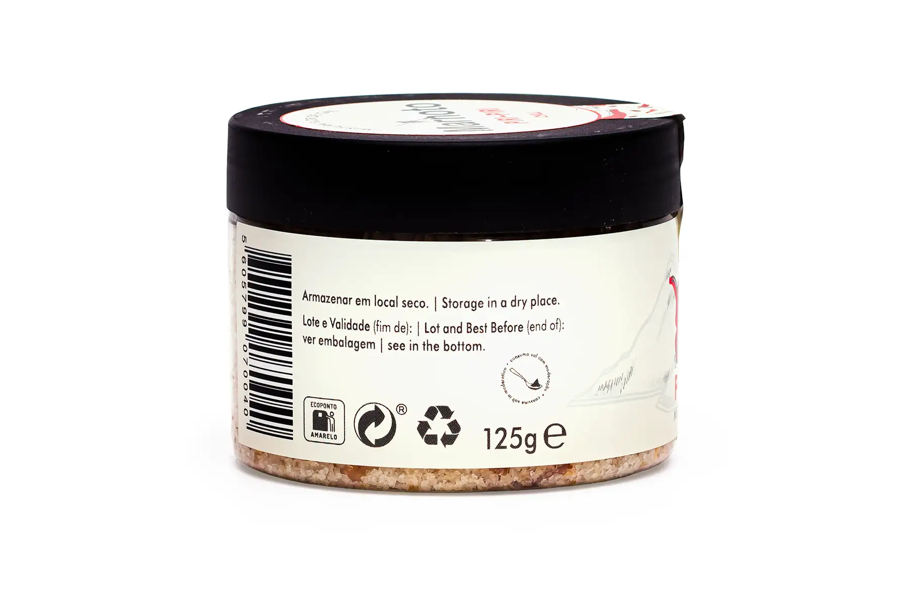 Recolhida manualmente, esta flor de sal 100% natural conserva todos os minerais do mar e a textura crocante que a torna única. Enriquecida com piri-piri seco, oferece um toque picante e aromático que transforma qualquer prato num momento gourmet cheio de personalidade.